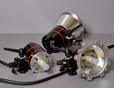These are the heads I use with my homebrew lighting system. Both types have identical cabling and connect to any of the generators.